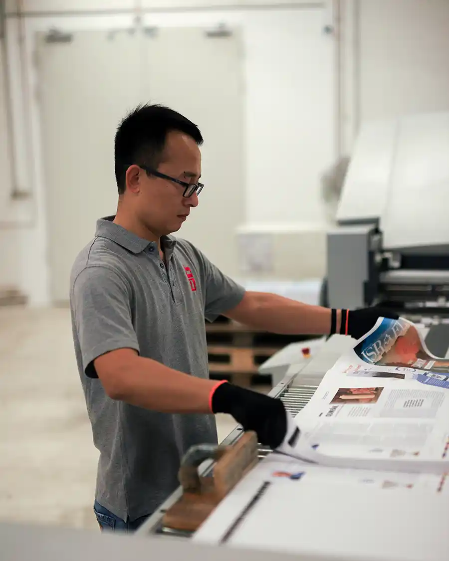 Du willst in der Welt der Druckweiterverarbeitung durchstarten? Als Medientechnolog/in in der Weiterverarbeitung lernst du, wie moderne Maschinen Druckprodukte präzise und hochwertig weiterverarbeiten – vom Schneiden über Falzen bis hin zum Binden. Du arbeitest mit technisch fortgeschrittenen Anlagen, sicherst die Qualität und trägst zu reibungslosen Produktionsabläufen bei. Dabei bist du Teil eines jungen, dynamischen Teams und wirst Schritt für Schritt in alle Abläufe eingearbeitet.