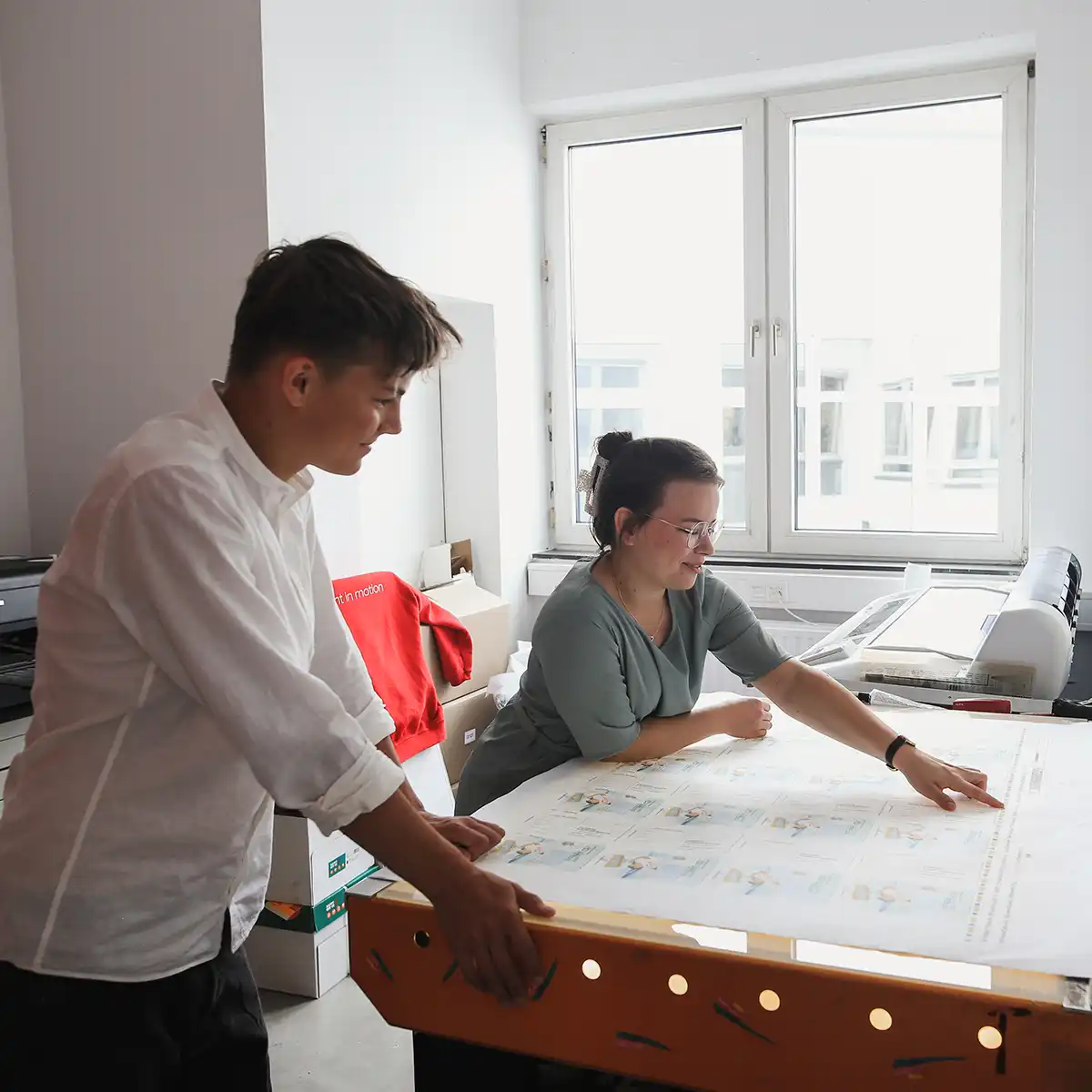 In der Druckvorstufe bereiten wir Ihre Daten sorgfältig für den perfekten Druck auf. Wir prüfen Farben, Schriften und Formate, korrigieren mögliche Fehler und sorgen dafür, dass Ihr Druckprodukt höchsten Qualitätsansprüchen entspricht.